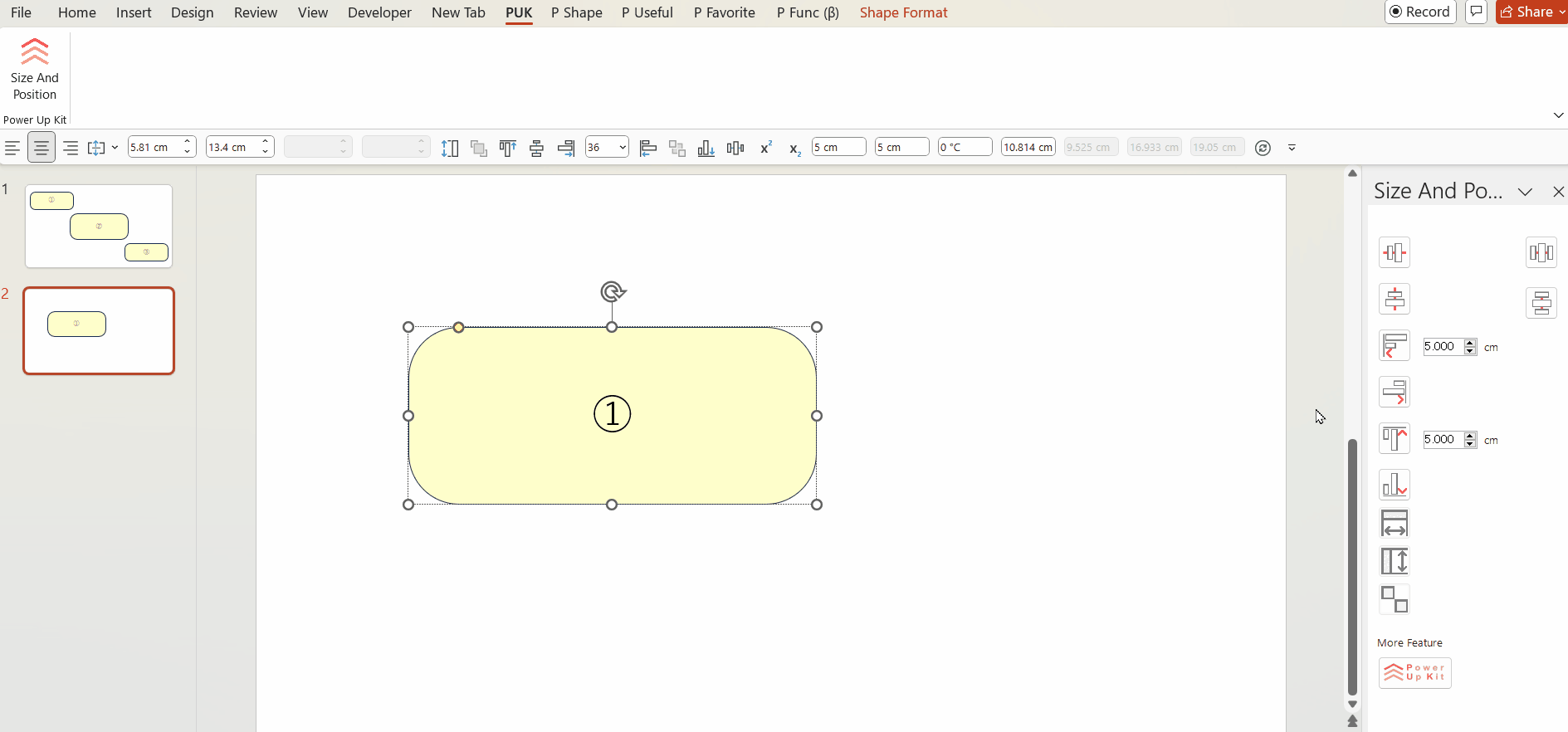 When a Shape is selected, the Left and Top positions appear in boxes on the right pane.