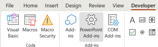 Statep 4: Select the “Developer” tab from the top of PowerPoint, then click on “PowerPoint Add-ins” (the gear icon).