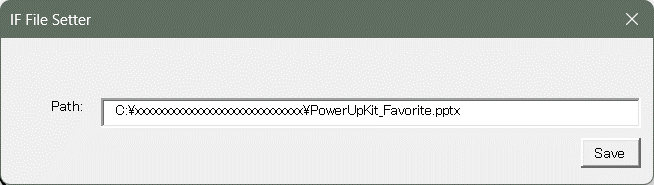 Step 6: Enter the full path of the “PowerUpKit_Favorite.pptx” file saved in step 1 into the window, then click the Save button.