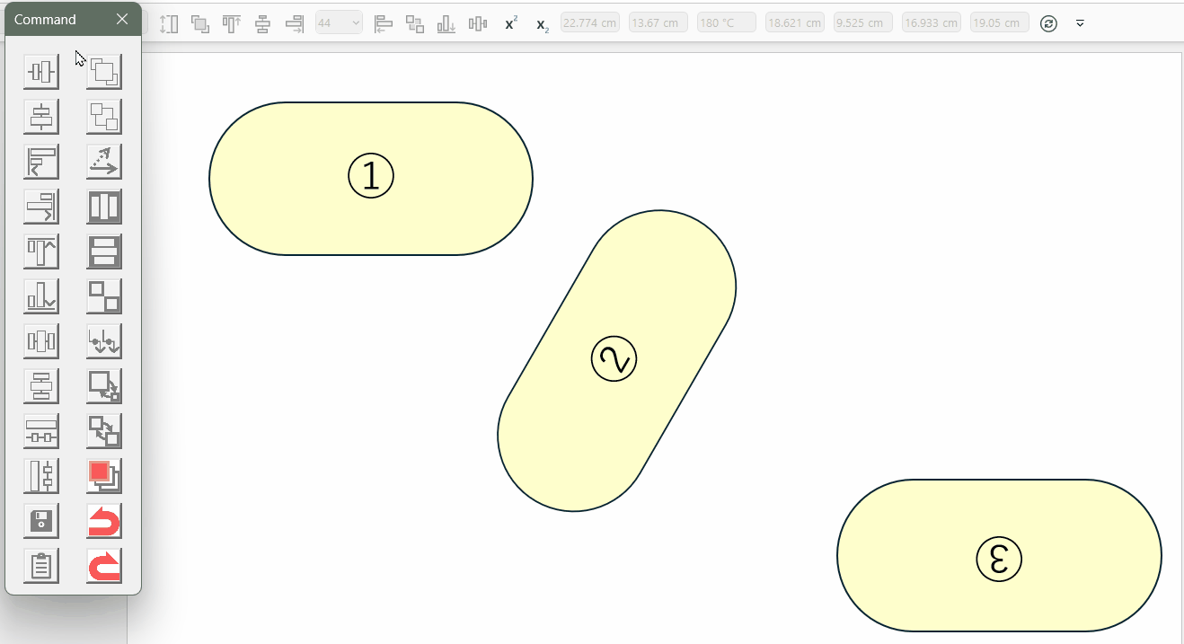Displays the horizontal spacing of the selected shapes up to the third decimal place. Changing the displayed value will modify the horizontal spacing of the selected shapes.